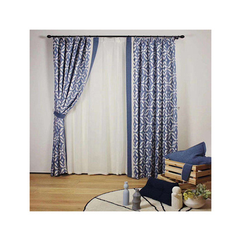 Desain Geometris Tirai Gaya Modern untuk Ruang Tamu Kamar Tidur Tirai Biru